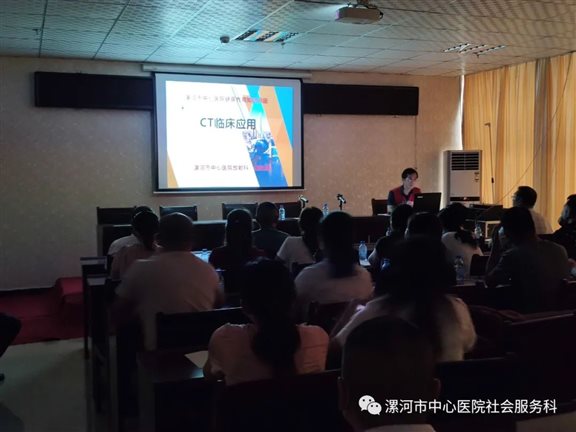 为进一步提高基层医务人员相关业务知识水平,影像科主任医师崔庆周以《CT临床应用》为题,对瓦店镇所有村医及卫生院医务人员开展专题讲座。指导大家如何正确选择影像学检查,如何正确阅片,以及在诊断过程中应该注意的问题,避免盲目检查、超范围检查等细节。会场大家学习积极性高,做笔记、拍照持续不断,培训效果良好。