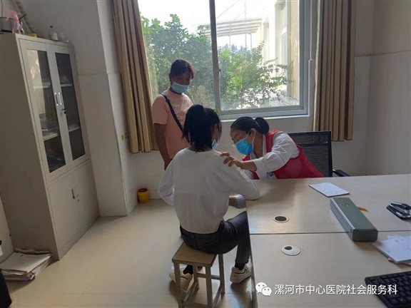 消化内科副主任医师曾艳丽熟练地进行触诊并进行症状分析。