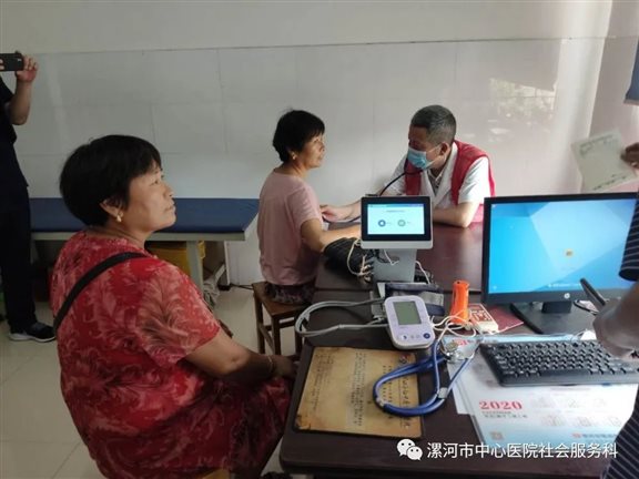 八月的天,太阳亮的耀眼,烈日炎炎,大地像个蒸笼一样,然而就是这样高温酷暑的天气也丝毫没有阻挡漯河市中心医院红十字志愿服务队到临颍固厢卫生院开展红会送医的步伐。本次是到固厢卫生院开展红会送医的第四次帮扶活动。专家阵容强大,包括神经内科主任医师王明科、妇科主任医师王慧芬、超声诊断科主任医师王永莉、疼痛科主任医师汪庆玎、高血压科主治医师王明磊、影像科主治医师王巍博等一行8位专家志愿者参加。