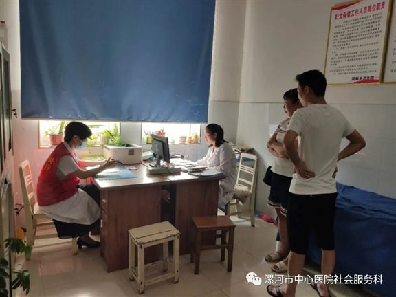就在帮扶过程中,一位小患者的病情牵动了专家志愿者的心。事情是这样的:一位老大爷听说漯河市中心医院的专家来了,就带着自己的孙子早早的从家赶来就诊,不知该看哪个科室的他来到了疼痛科汪主任的诊室,看到孩子的那一刻,汪主任的眼睛湿润了,一个12岁的男孩,严重的脊柱侧弯畸形,生长发育障碍,身材矮小犹如七八岁孩童一般,同时伴随的还有一定的智力低下。孩子的爷爷向专家讲述自己是贫困户,家里还有一位50多岁的精神障碍患者需要照顾,虽然孙子的智力比一般孩子低下,但孩子毕竟才12岁,以后的路还很长,希望专家能给予救治。由于卫生院条件受限,汪主任在认真查体后,告知老大爷孩子需要做畸形矫正,对之后的生长发育能起到很大的帮助作用。同时向他宣讲贫困人员就医的相关报销政策,以及漯河市中心医院对贫困人员提供的两减两免优惠政策。社会服务科周副科长还向他讲解了如何进行残障鉴定,向残联申请救助的相关信息,孩子爷爷高兴地说“我就知道大医院有办法,太谢谢你们了!”