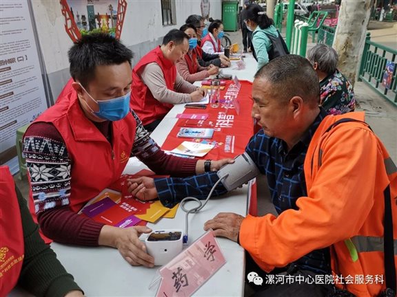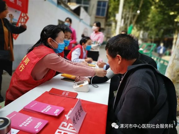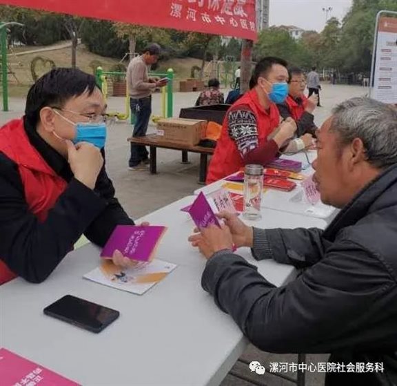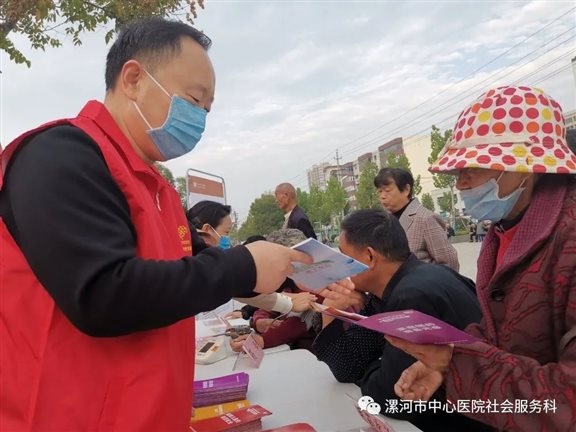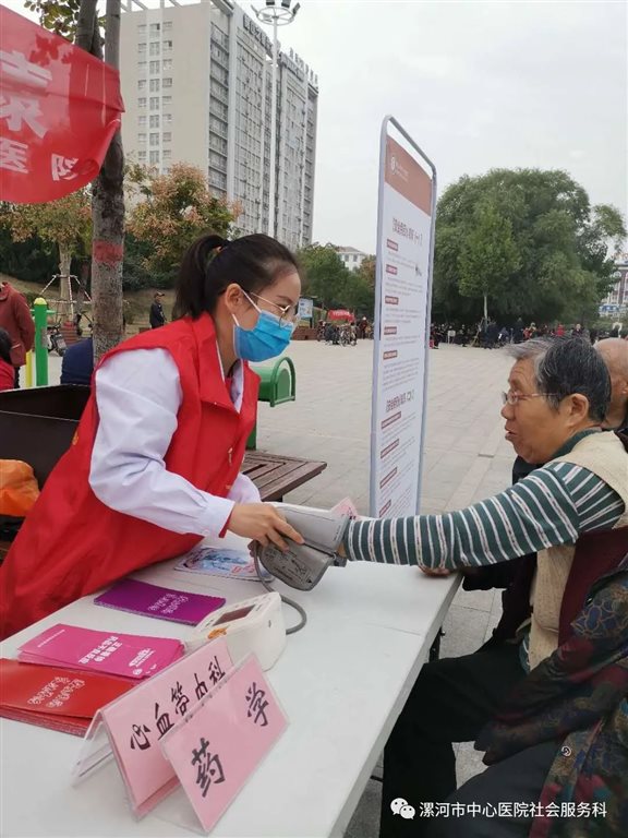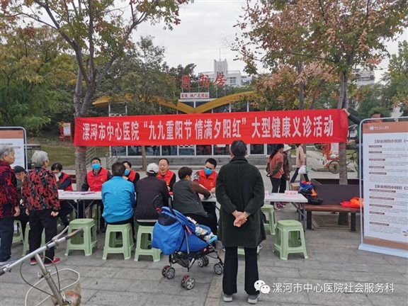 10月26日,金秋送爽,丹桂飘香,为弘扬中华民族孝亲敬老的是传统美德,漯河市中心医院药学部主任张建华、药房主任董敬远等10余人专家志愿者们来到烟厂花园开展“九九重阳节,情满夕阳红”大型义诊活动。