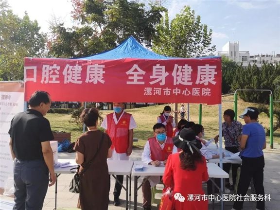 2020年9月20日是第32个“全国爱牙日”。为使广大群众掌握必要的口腔保健知识,提高大家对口腔健康的认知,9月20 日上午,漯河市中心医院门诊口腔科的志愿者们在烟厂花园开展义诊活动,向居民群众普及爱牙护牙健康知识。