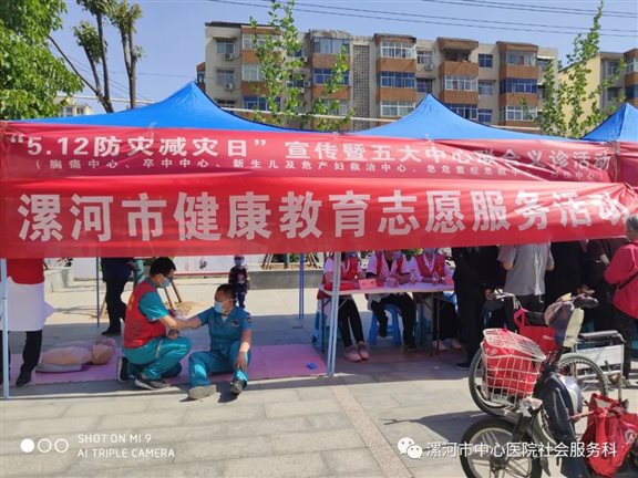 5月12日上午,漯河市中心医院组织骨科、神经内科、心内科、儿科、妇产科、急救中心,全科医学科等20余名专家志愿者到烟厂花园开展“全国防灾减灾日”志愿服务活动。
