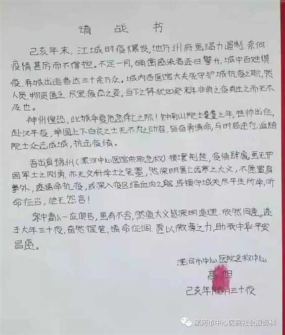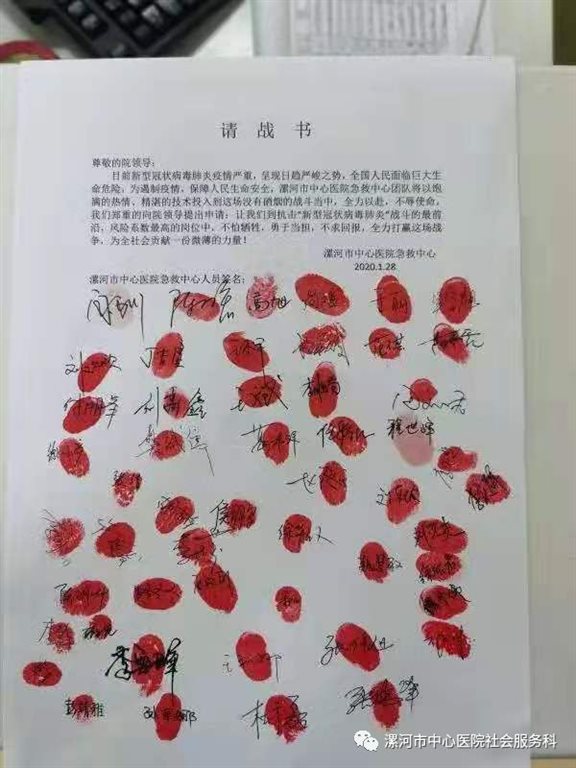 急救中心全体医护人员集体请战。“我自愿”“我也是”“还有我”......