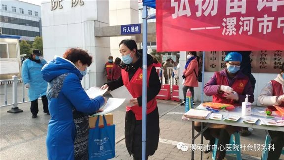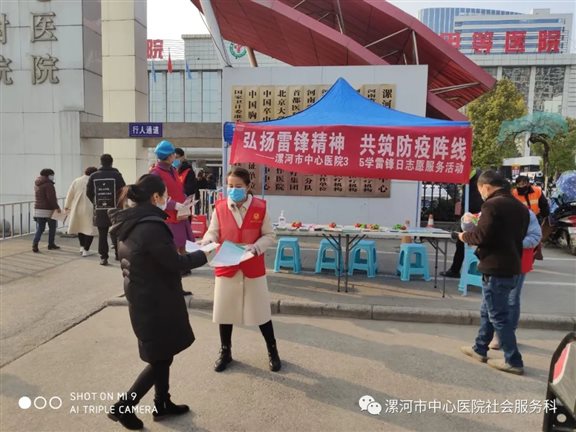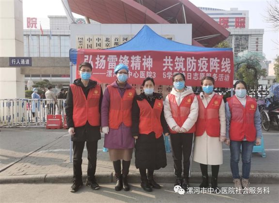 新冠肺炎疫情发生以来,漯河市中心医院志愿者们无私奉献,坚守在防疫一线,随着复工复产逐渐推进,门诊就医量回升,为满足人民群众看病治病需求同时避免防疫意识淡漠,安抚就诊恐慌情绪,帮助患者有序、安全就诊,漯河市中心医院团委印制特殊时期患者就诊须知及专家坐诊信息宣传页,院外设立流动“学雷锋志愿服务站”,于3月5日开展“弘扬雷锋精神,共筑防疫阵线”学雷锋日志愿服务活动。