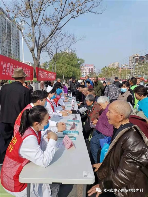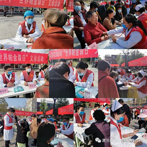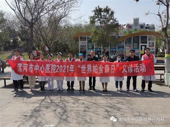 每年的 4月11日为“世界帕金森日”,今年的主题是“帕金森病心理健康关怀与支持”。为更好地宣讲帕金森病相关知识,提高群众对帕金森病的认识和重视。4月9日上午,漯河市中心医院(漯河市第一人民医院)神经内科主任、神经内科一病区主任郑春玲、神经内科副主任、神经内科三病区副主任龙翠英、介入科副主任刘要先副主任医师、神经内科三病区朱磊、精神科王丹、全科医学科刘亚茹、康复科蔚盼盼及护理团队一行来到烟厂花园,开展“世界帕金森日”大型义诊宣传活动。