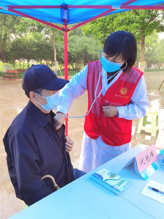 今年“世界高血压日”的主题是“精准测量,有效控制,健康长寿”。即应用经过验证的设备和正确的方法准确监测血压,借助药物及改变生活方式等方法来实现血压有效控制,进而实现高血压防治的最终目标-健康长寿。同时值得注意的是,自2016年以来,全国高血压日的主题均为“18岁以上知血压”,因此,市民无论老少都应随时了解自己的血压状况。本次义诊活动的主要目的在于促进和宣传18岁及以上成人定期自我精准监测血压,开展高血压防治健康教育,控制高血压危险因素,指导群众做好自我血压管理,切实提高高血压知晓率、控制率和治疗率。漯河市中心医院高血压科医护人员一早冒雨来到市区烟厂花园,通过在活动地点悬挂宣传条幅,向群众发放高血压及相关知识宣传资料,进行免费血压测量、测量姿势指导、健康咨询和指导合理用药等方式,使广大市民及时知晓自己的血压状况,呼吁成年人定期监测血压以便尽早发现漏诊的高血压,普及高血压疾病的危害及树立健康的生活方式等防治知识,呼吁已诊断的高血压患者精准测量并且科学、有效控制血压。