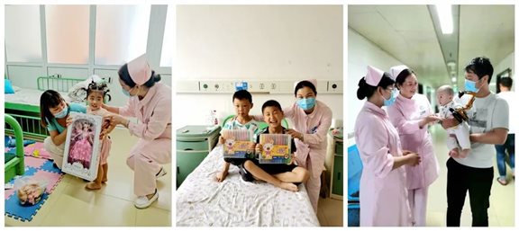 各个病区均由科主任、护士长带队,给每位小朋友发放了节日的礼物。轻松欢快的气氛缓解了小朋友看到“白衣天使”时候的紧张,忘却病痛,尽情享受节日的喜悦。通过医患互动,加强了医务人员与小朋友及家属的沟通,给患儿及家长鼓励和信心,帮助他们尽快回归家庭和社会。