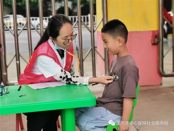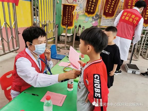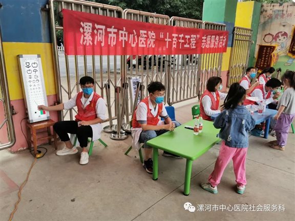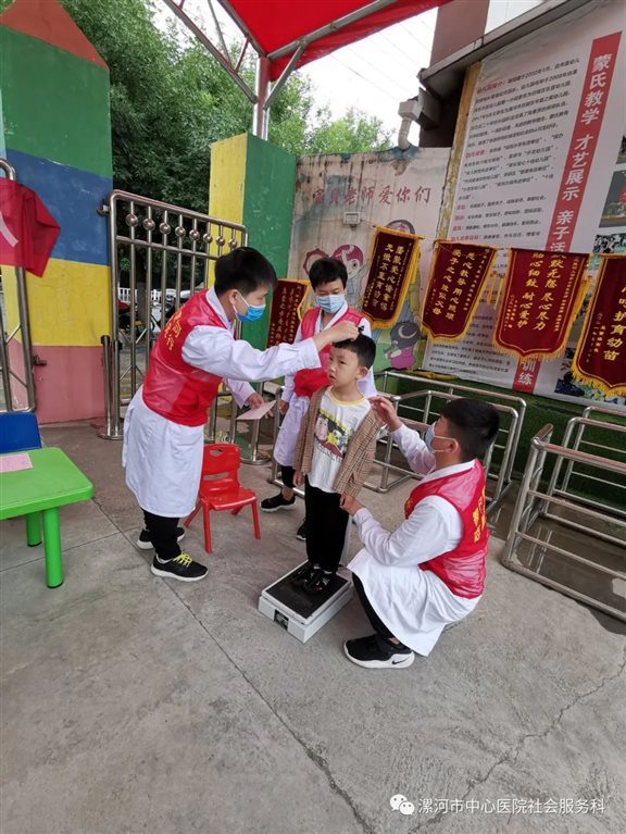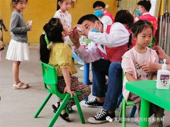为更好的了解孩子生长发育的情况,关注幼儿身心健康,健康成长、预防疾病发生,6月18日上午,漯河市中心医院社会服务科联合儿科、眼科、口腔科等10余名专家志愿者到华夏之星幼儿园开展“十百千工程”志愿服务活动。