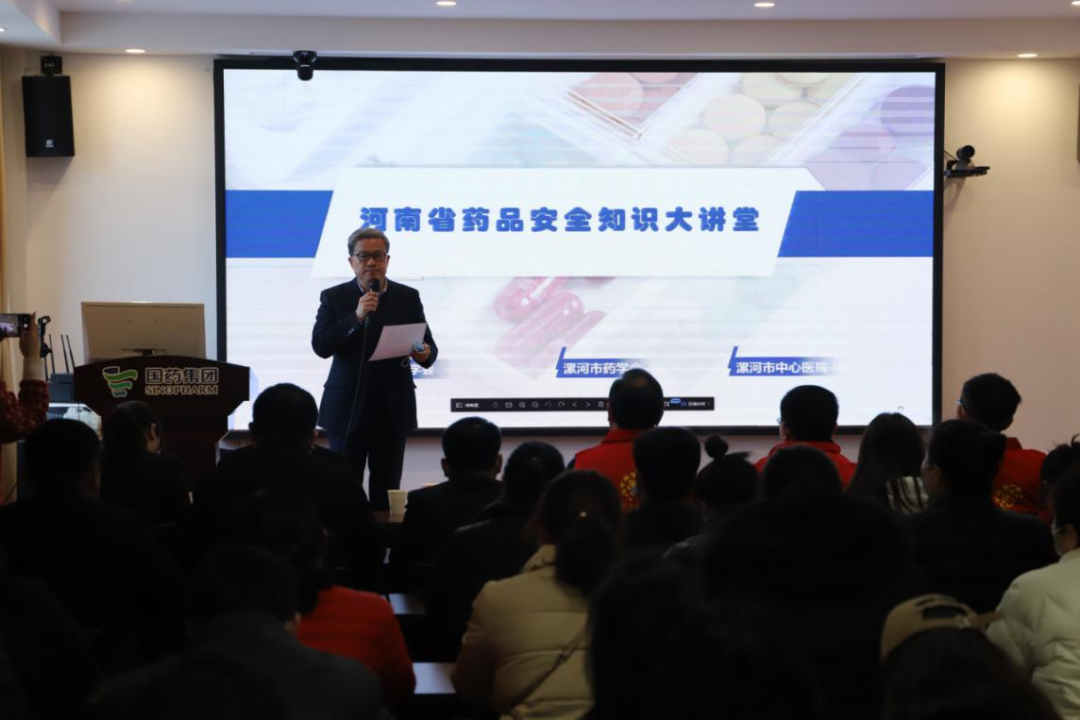 为减少不安全用药和用药错误导致的医疗伤害,将药学知识传播惠及更多的人民群众,2月25日,“'i科普'科技志愿服务活动——河南省药品安全知识大讲堂”走进了国药集团漯河分公司。此次活动由中国科技志愿服务平台发布,河南省科学技术协会、河南省药学会主办,漯河市药学会、漯河市中心医院承办。活动的主题是“i科普科技志愿服务——药无伤害、用药安全”。国药控股漯河有限公司及下属专业药房“漯河市力致康医药有限公司”、“老百姓大药房”、“力致康药店”等社会药店从业人员80余人参加了培训。