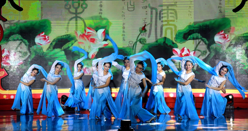 古典舞《乐府汉唐》舞姿端庄、曼妙飘逸,与现代舞《咖喱咖喱》、《为爱加油》的欢跃活泼、轻盈灵动相映成趣,引人入胜。