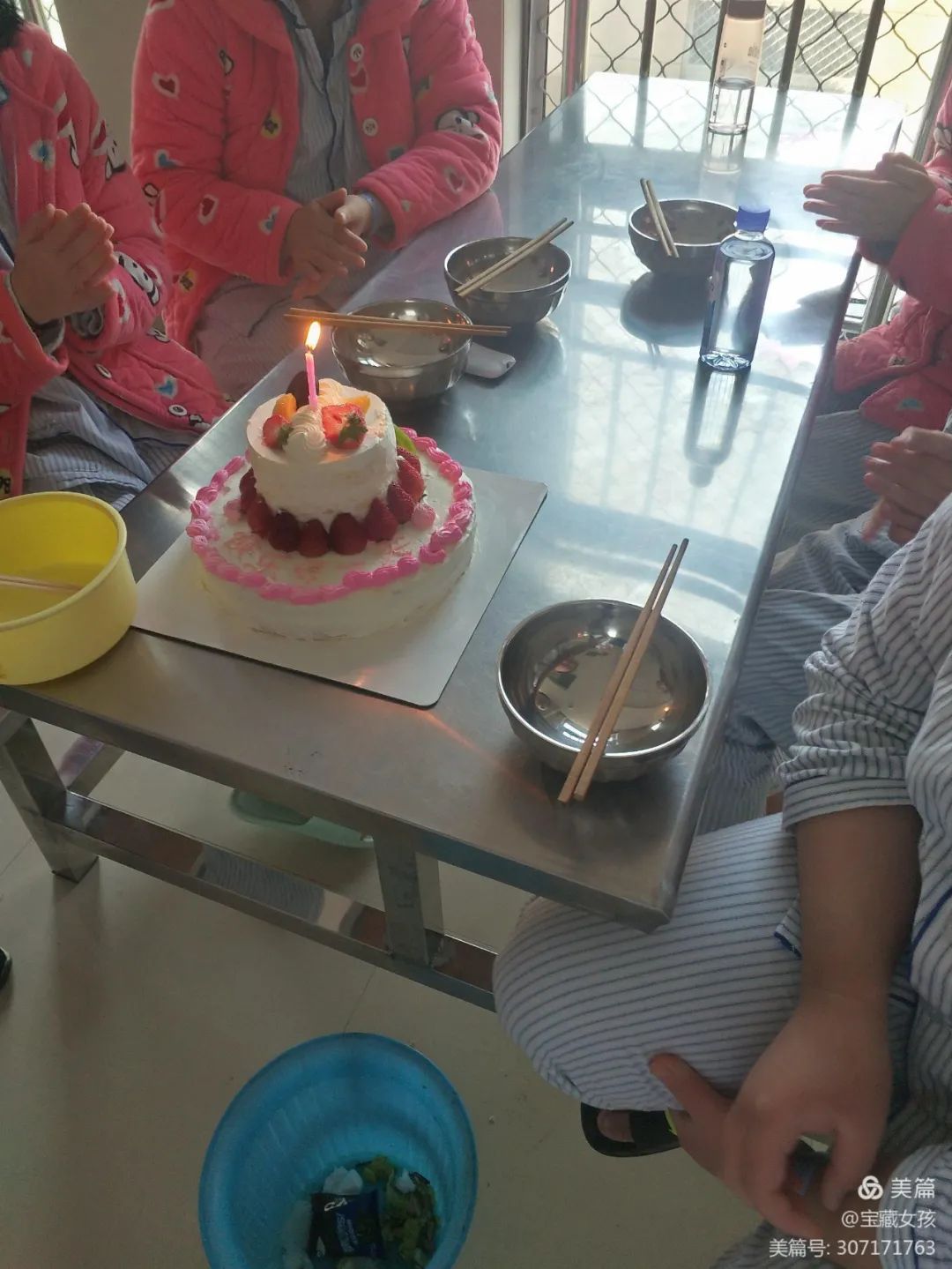 由于精神科是封闭病房,又没有家属的陪伴,所以有些患者的生日是在病房度过的。虽然没有家人,但我们精神科是一个大家庭。我们的护士姐姐亲自为患者做了一个生日蛋糕,花费了好几个小时,这是她第一次做蛋糕,虽然不甚完美,但是满满的心意和爱意。