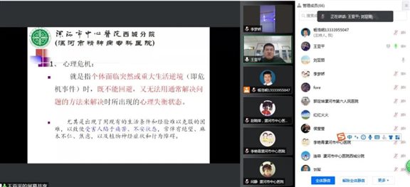 11月20日上午,漯河市中心医院西城分院成功举办漯河市第二届临床心理学新概念与新技术研讨会,会议形式全程采用腾讯线上进行。本次学术会议是由漯河市医学会批准,漯河市中心医院、漯河市精神病专科医院承办的市级学术活动(项目编号:2021161900004)。